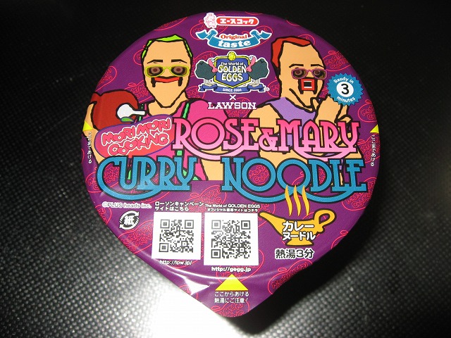この前のチロルチョコと一緒に買っておいたのが、本日の「ローズ&マリー モリモリクッキングカレーヌードル」で198円です。