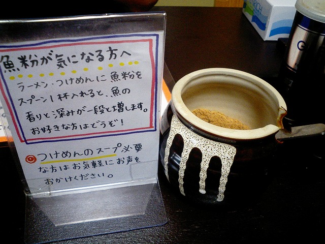 テーブルに備えてある魚粉を後半入れて食べてみましたが、煮干の粉みたいな奴で、それも結構好印象でしたね。