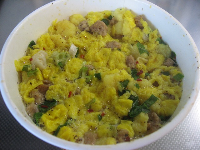 具材は玉子、鶏そぼろ、ねぎ、唐辛子。