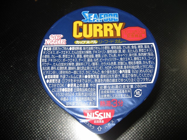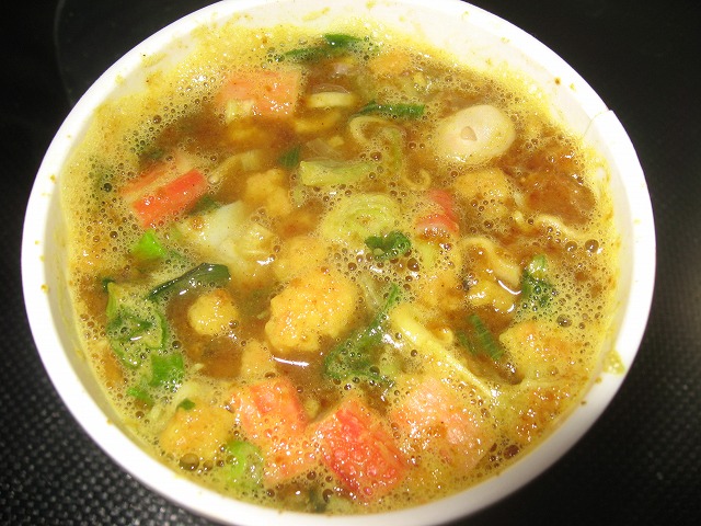 実食した感想ですが、シーフードヌードルのカレー味じゃなくって、カレーヌードルのシーフードバージョンって事でした。