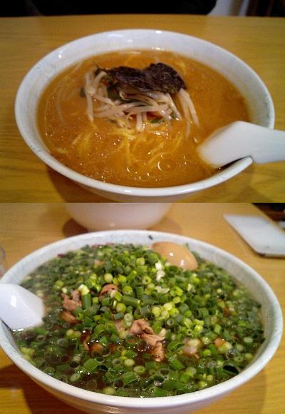 写真のそれがオーダー品、上が「味噌ラーメン」で下が「肉ラーメン(大盛り)」です。