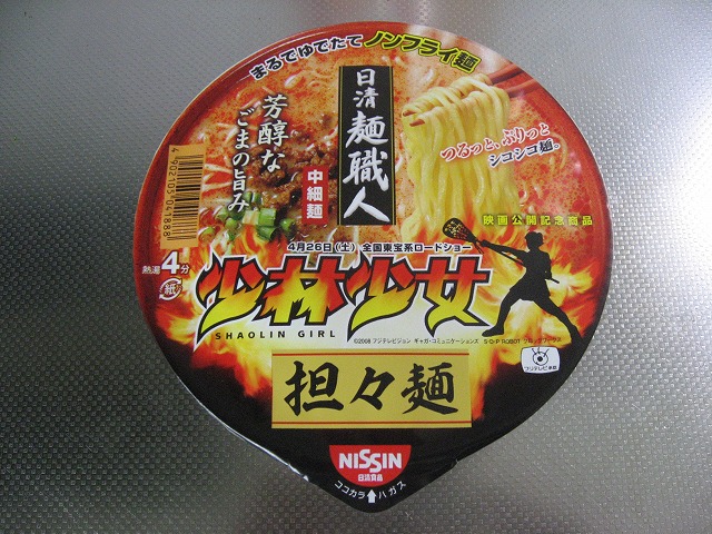 本日のカップ麺は「日清麺職人 少林少女 坦々麺」です。