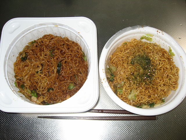こっちもソースを掛けてかき混ぜて両方完成!!