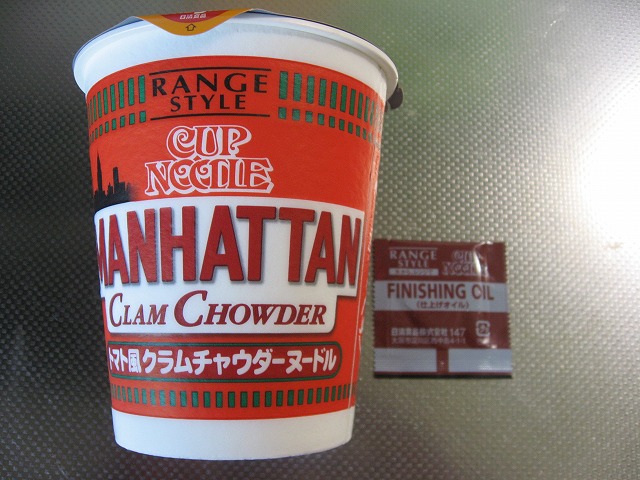 この前食べた「 ニューイングランドクラムチャウダー クリーム風 クラムチャウダーヌードル」の姉妹品の「マンハッタンクラムチャウダー トマト風 クラムチャウダーヌードル」です。