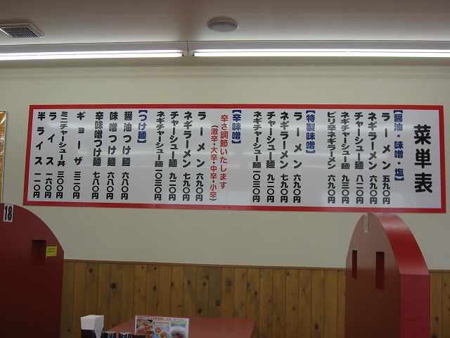 さすがに厨房のまん前にある券売機のメニューは撮影できませんでしたが、こっそり壁のメニューを撮影してきましたのでご参考までに、