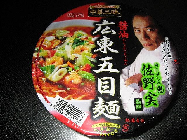 さてさて今回の広東五目麺ですが、麺が妙にべた付く気がしますね~「スーパーノンフライ製法」な奴らしいんですが、クロレラを練りこんでるみたいですね、俺的にはちょっと・・・って感じです。
