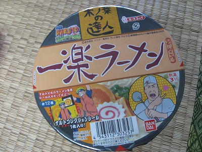 少年ジャンプで好評連載中のNARUTOに出てくる「一楽」って言うラーメン屋のカップラーメンです。
