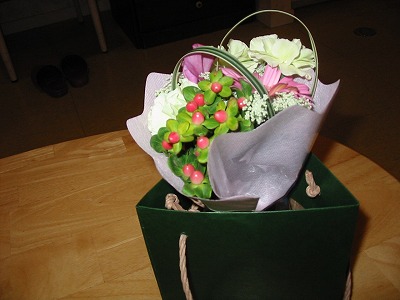 掲載した写真はドーナツと一緒に頂いたお花だそうです。