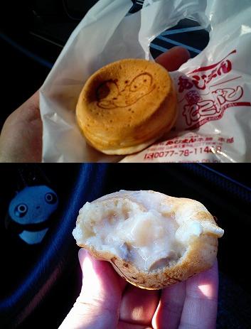 待つことしばし、渡された4個のうち一個をその場で食す事にしました、出来立てだし当然だよね。
