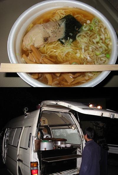 早速ワゴン車に駆け寄って、ラーメン(500円)を2個オーダー。