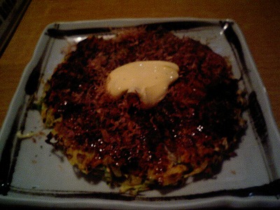 写真は俺がオーダーした「エビチリソースのお好み焼き」です、「お好みデラックス」も撮ったんだけど、見た目一緒なんでこっちのみの掲載です。