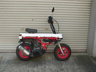 ノーマルのモトコンポならセンタースタンド、改造済みならサイドスタンドが付いてるはずなんだけど、全く無いのよ。