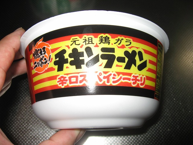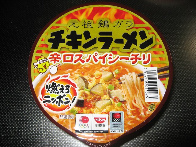 本日のカップ麺はチキンラーメン 辛口スパイシーチリです。