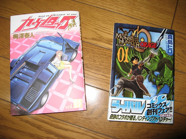 っと、そこで「カウンタック」の第13巻を発見、すかさず手に取り他の平積みをチェックしてると、モンハンのマンガが有るのに気が付き、第1巻だって事で試しに買ってきました。