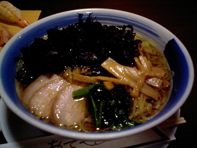 写真のそれが「岩海苔ラーメン」です、麺に対してスープが妙に少なくって厳しいのよ、味は良く有りがちな和風な感じ妙に甘い奴ね。