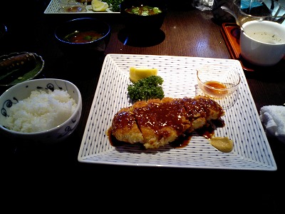 いや~~、今回行った店も結構なお値段だった、「焼きロースかつ定食」が1200円!ちょっと俺的にはありえない値段だ・・・。