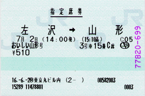 出品内容は7/2の昼2時左沢発山形着って切符が4人分のセット、つまり向かい合わせの席ワンボックス取ってあるって事。