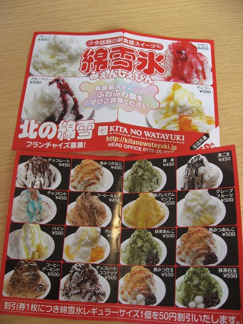 ジャスコ南の2階にある「綿雪氷(みぇんしぇびん)」って言うカキ氷屋さんに行ってきました。