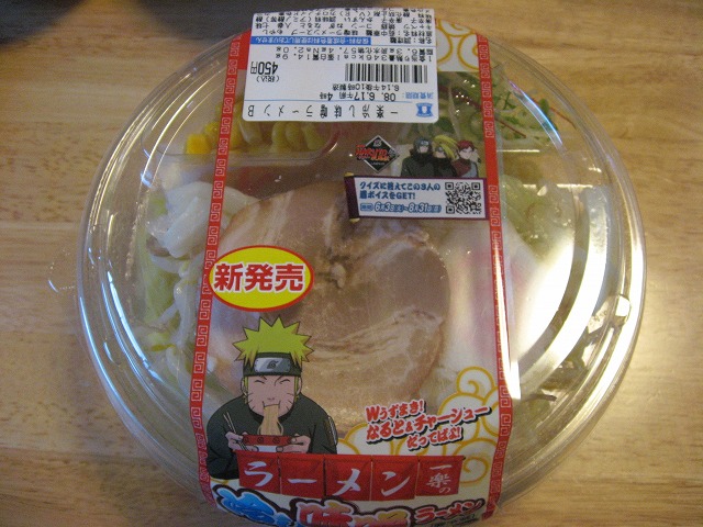 今月の2日から始まってるローソンの「ナルト見参キャンペーン」ですが、本日はそれの「一楽冷やしラーメン(450円)」です。