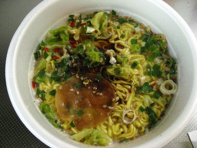 なんて事を考えながら作り方に従い、お湯を注いで待つ事3分。