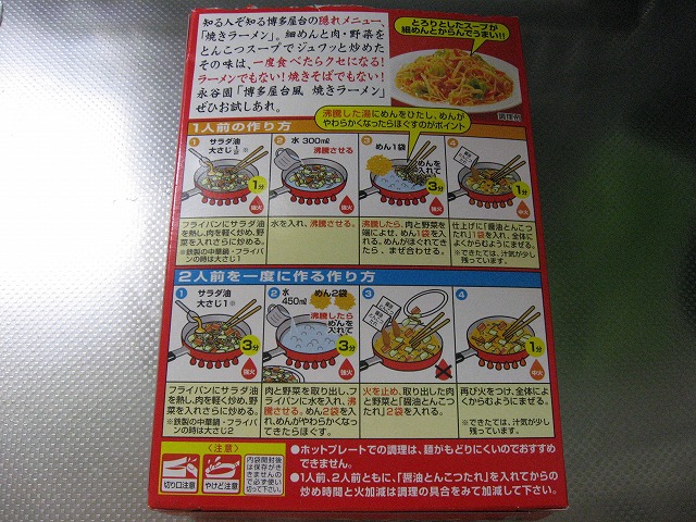 って事で昼飯に嫁さんが永谷園の「博多屋台風 焼きラーメン 醤油豚骨」を作ってくれました。