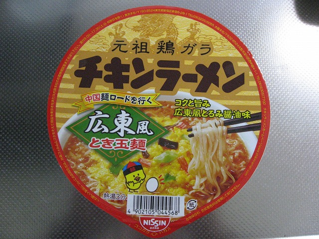 そんなオリンピックに関心薄な私でもオリンピック応援商品のカップ麺は食べるわけでね、本日お湯を注いだカップ麺は「チキンラーメン 広東風 とき玉麺」です。