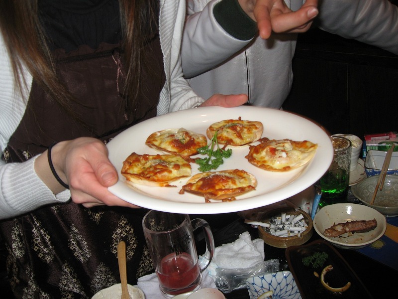 ちなみにピザの写真は、若い奴らだけで再度やるとか言い出して参加人数分持ってこられたところです、よ~~く見ると焦げ目が多いのがありますよね、ズバリそれが当たりです。