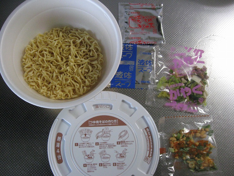 へ~~、やっぱり最初のほうはカップ焼きそばの手順で作っていって、出来上がってからスープと後入れかやくを入れるのね。