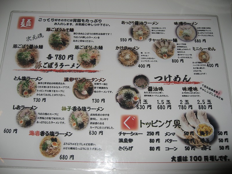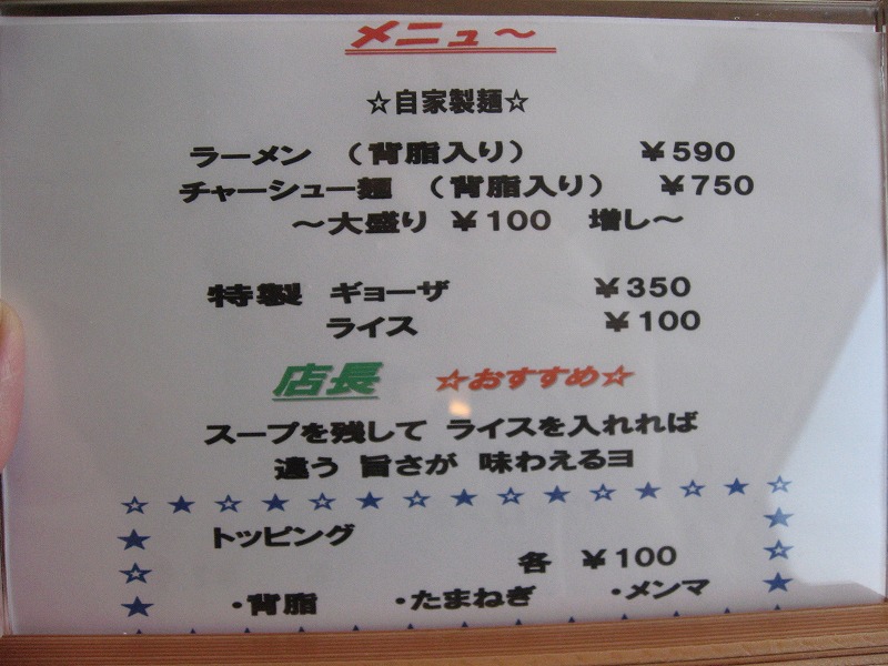 先に運ばれてきたのは味噌ラーメン、ちなみに今回は味噌ラーメンの写真は撮ってないです、前回と同じなんでね、それとメニューも。