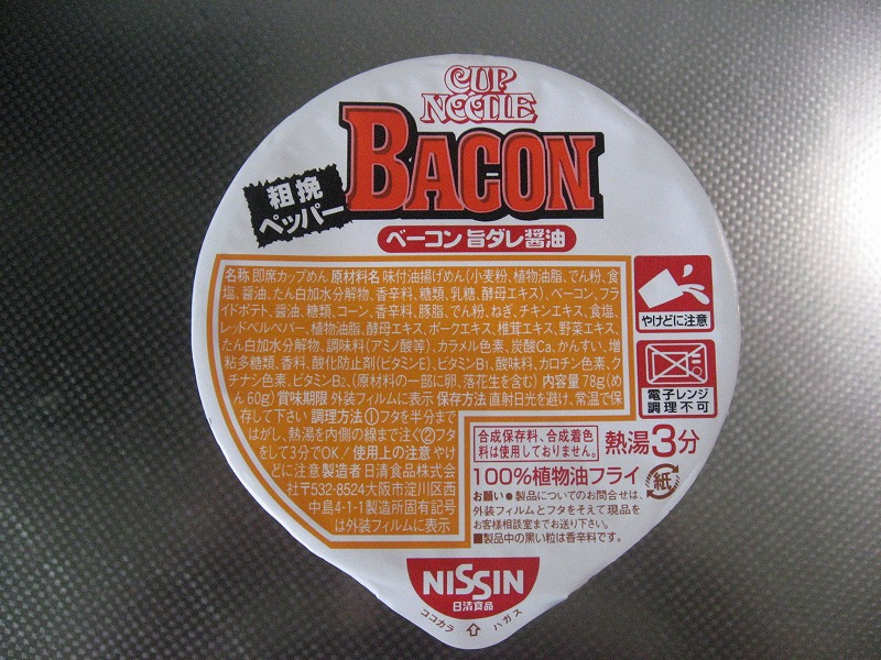 本日は日清の「カップヌードル ベーコン旨ダレ醤油」です。