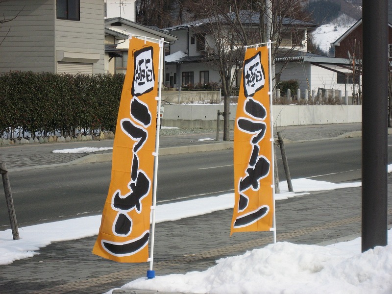 ←この昇り旗が店先に立ってますが、食べ終わってから見ると破り捨ててやりたくなります、マジで。