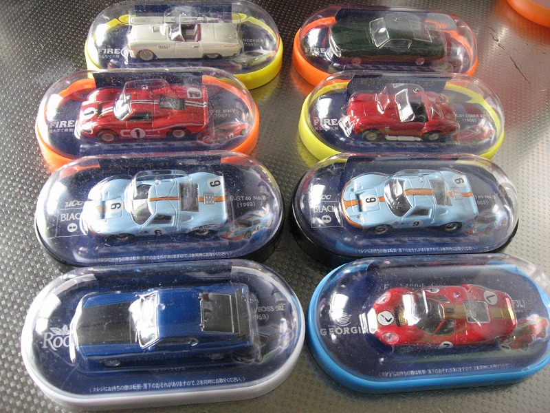 最初GT40とマスタングだけで良いかとも思ったんですが、コーヒーを買いに行くたびに、どうせならオマケが付いてるほうが・・・って感じでヅルヅル集めちゃったわけです・・・。