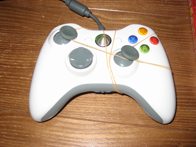 そ~~なんですよ、アナログスティックを両方とも輪ゴムで右に倒した状態にすると、勝手に戦って勝手に勝ってくれちゃうんですよね~。