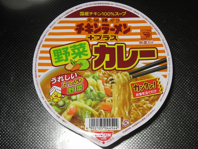 って事で本日のカップ麺は「チキンラーメン+(プラス)野菜カレー」です。
