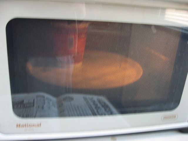←こんな感じで電子レンジに入れて、ウチの場合は500wなんで5分30秒。