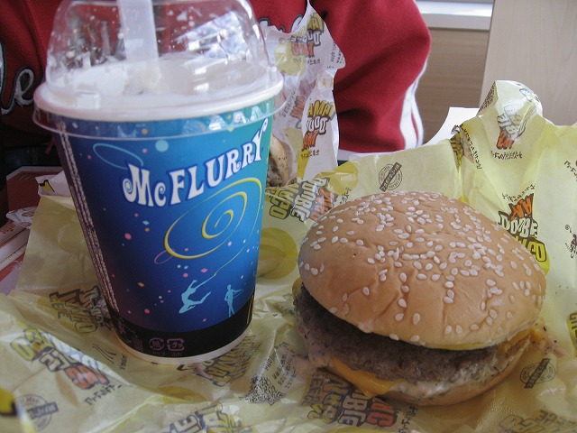 で、本日オーダーしたのは「チーズたまごダブルマック(290円)」と「マックフルーリー(300円)」です。