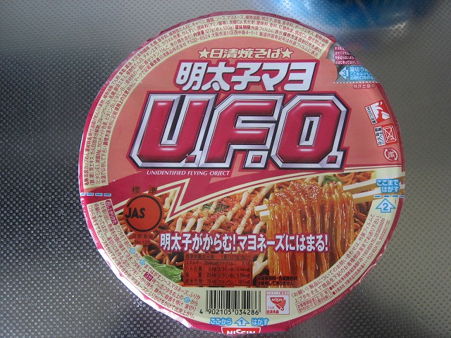 空腹を満たすためにカップ麺でも食べましょうって事で、カップ麺貯蔵庫(?)を空けて取り出したのが此方の「日清焼そばU.F.O. 明太子マヨ焼そば」です。