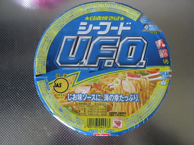 昨日の「明太子マヨ UFO」に続いて本日は同時発売の「日清焼そばU.F.O. シーフード焼そば」で御座います。