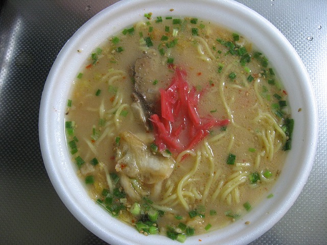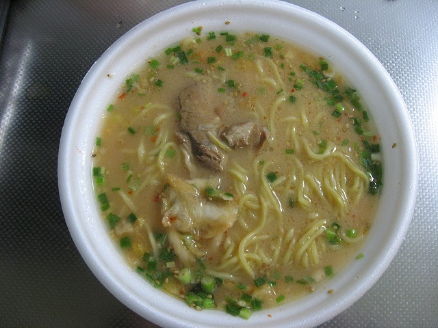 今回も十勝新津製麺お得意の氷結乾燥ノンフライ麺ですね、この麺中々美味しいとは思うんですが、カップの中でビニールにくるまれてるのが何とも仰々しくって面倒臭いんですよね・・・。