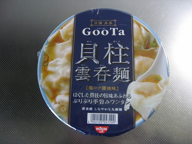 さてさて本日もカップ麺のお話です、今回は「GooTa 貝柱雲呑麺 【鶏コク醤油味】」です。
