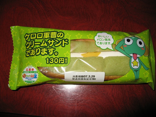 帰宅後早速食べてみたんですが、結構美味いですね、俺的にはケロロのメロン風味のクリームサンドよりク