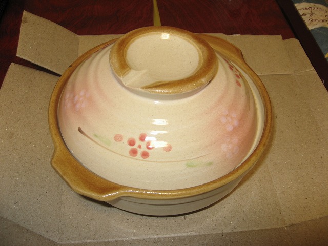店の包み紙の下のダンボールは実は土鍋が元々入って売られていたダンボール箱です。