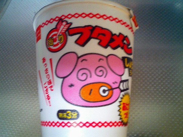 台所に可也前から転がってる「ブタメン」の「しょうゆ味」が有るんですが、「食べないなら捨てろよ」との嫁さんからのお叱りを受け、勿体無いんで食べることにしました。