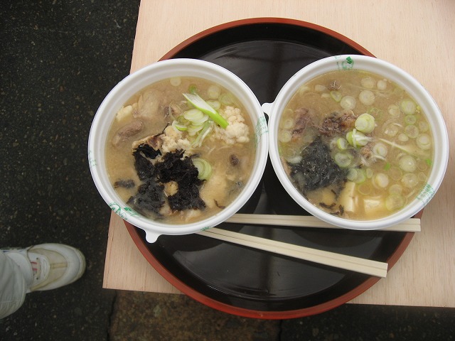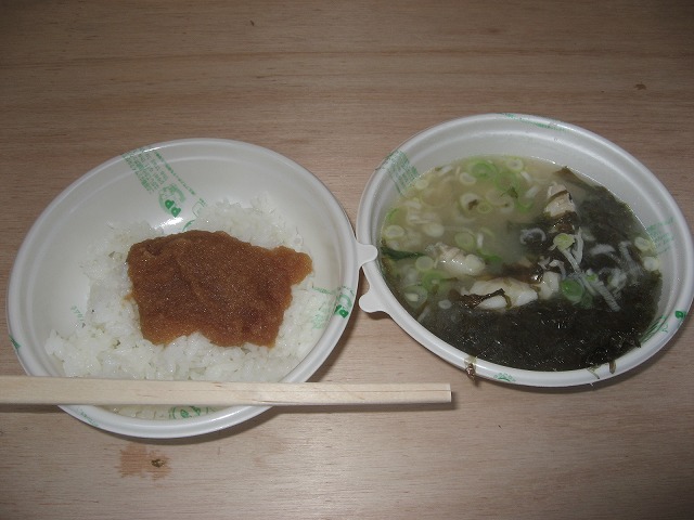 って事で、手っ取り早く一番手前のテントの寒鱈汁(500円)とタラコご飯(350円)をゲット、ちなみに佐藤食品さんでしたね。