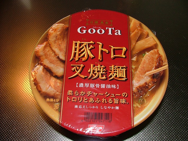 本日のカップ麺は日清GooTaの 豚トロ叉焼麺 【濃厚豚骨醤油味】です。
