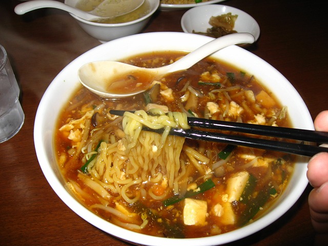 噂通り酸っぱさとピリ辛さが混在してる餡かけラーメンでしたね。