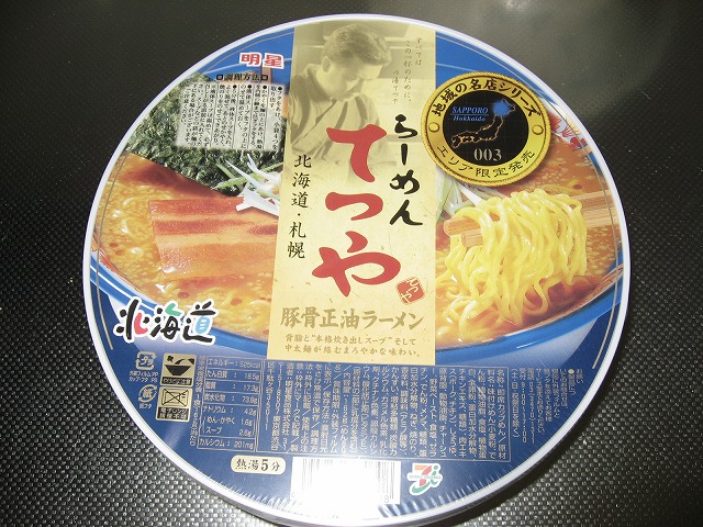 へ~~って感じで眺めていると、中々旨そうなカップ麺を発見、それが此方の「らーめん てつや 豚骨醤油ラーメン」って奴。