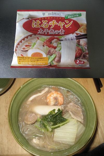 1枚目がミツカンで出してる「太平燕(たいぴーえん)の素」、2枚目が出来上がりです。