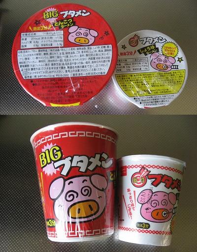 でもって今回のBigブタメンですが、通常のブタメンと比べてもらう為に並べて撮影してみました。