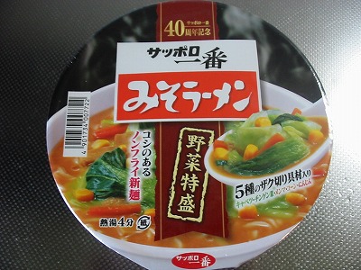 本日食したカプ麺は「サッポロ一番40周年記念 みそラーメン 野菜特盛」です。